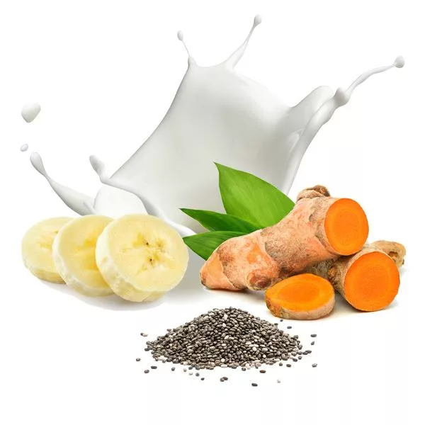 Composición: Kéfir de cabra (56%), manzana (17,8%), plátano (13%), coco, miel cruda de romero, chía, aceite de coco, BIO cúrcuma, pimienta.