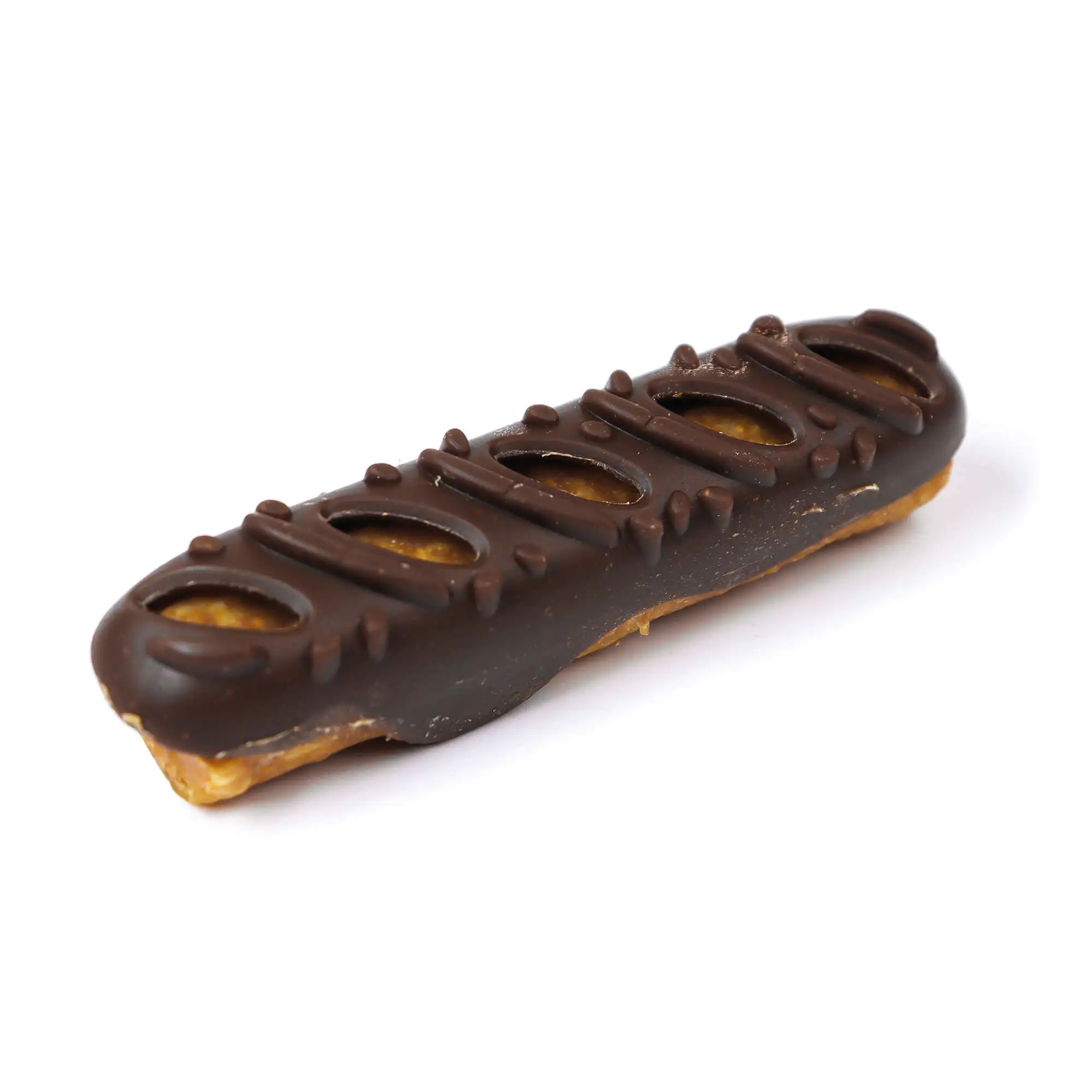 Este snack natural con forma de baguette y sabor algarroba para perros es una opción deliciosa y saludable para mimar a tu peludo. Con ingredientes simples y naturales, esta baguette casera está llena de sabor y nutrientes beneficiosos para tu perro.