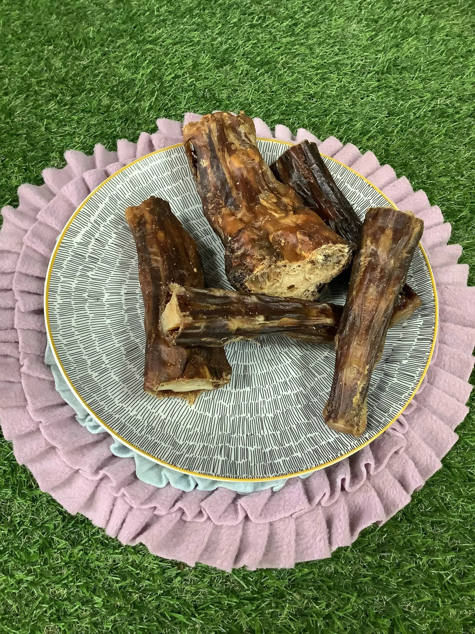 Secciones de Rabos de ternera de unos 15 cm de largo, con un contenido de grasa medio. Esta mezcla de huesos, cartílagos y piel ofrece a tu perro una masticación saludable y crujiente que les encantará.