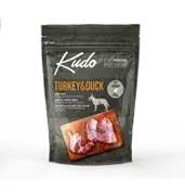 Carne deshidratada pavo y de pato (34%), grasa de ave (pavo, pato y pollo) (10%) guisantes secados al sol (9%), semillas de alforfón, copos de avena (8%), hígado de pollo (8%), maíz integral (6%) calabaza deshidratada (2%), manzana deshidratada (1,8%), zanahoria deshidratada (1,2%), semillas de lino, algarroba, extracto de achicoria, hierbas deshidratadas (manzanilla, romero, perejil) (0,3%), beta glucanos, mezcla de vitaminas y minerales. Total ingredientes cárnicos: 52%