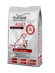 Platinum Natural Adult Beef es un alimento semi-seco para perros adultos.
