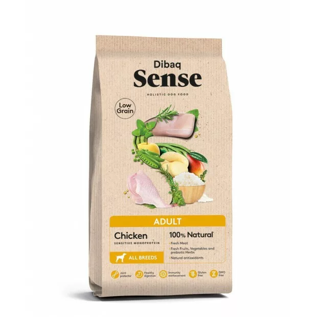 COMPOSICIÓN: Pollo 38% (carne fresca de pollo 20 %*, pollo deshidratado 18%), arroz 20%*, guisantes pelados*, almidón de guisante, aceite de pollo, pulpa de remolacha (fuente de fibra), proteína hidrolizada de pollo, hígado de pollo hidrolizado, sustancias minerales, fibra vegetal, verduras y frutas frescas 4% (judías verdes*, patatas*, mango* y manzana*), protectores articulares (Condrotin sulfato, Glucosamina sulfato y MSM (componentes del cartílago articular)), yuca, raíz de achicoria (fuente de inulina-FOS), levaduras (MOS), extractos de plantas (orégano, romero, tomillo, melisa y alcachofa) y antioxidantes naturales (tocoferoles*).* Ingredientes naturales.