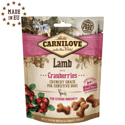 cordero criado en libertad 50 % (cordero secado 35 %, cordero fresco 15 %), calabaza 15 %, guisantes amarillos 8 %, manzanas secadas 5 %, zanahorias 5 %, garbanzos 4 %, arándanos rojos 4 %, grasa de pollo (conservada con tocoferoles) 4 %, semillas de lino 2 %, espinacas secas, 2 %, aceite de semillas de lino 1 %.