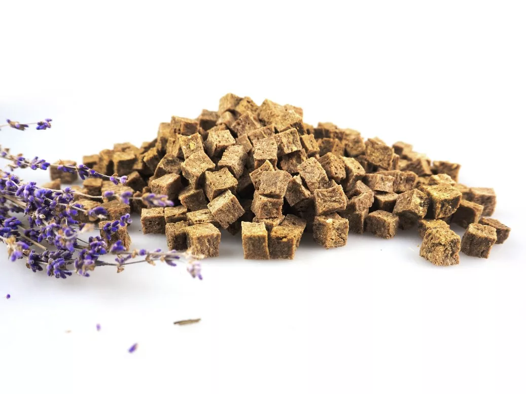 Ingredientes: 95% carne de conejo, 5% mezcla de hierbas (manzanilla, pasiflora, flores de lúpulo, melisa, avena verde, flores de caléndula, pensamiento, lavanda, valeriana)