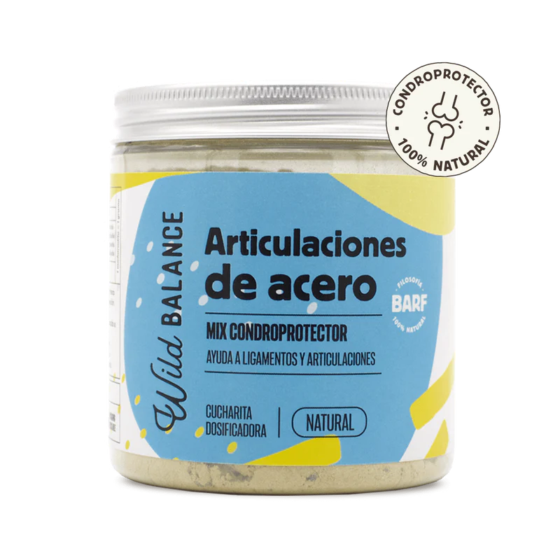 ARTICULACIONES DE ACERO es un condroprotector natural para perros y gatos que ayuda a mejorar la salud de sus articulaciones y ligamentos. Es muy importante usar este suplemento a modo de prevención cuando nuestros peludos ya tienen una edad o si tienen tendencia a padecer alguna enfermedad que afecta a las articulaciones.