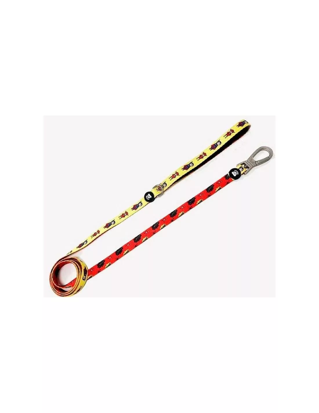 SuperDog, el perro de acero. Esta correa es súper fuerte. El mosquetón que incluye es duro de roer, tu perro no se escapará ni aunque quiera. Con diseños chulis a cada lado para que seáis la envidia del parque. Esta correa tampoco se olvida de ti, y hemos cubierto el asa con neopreno acolchado para que no te hagas daño.