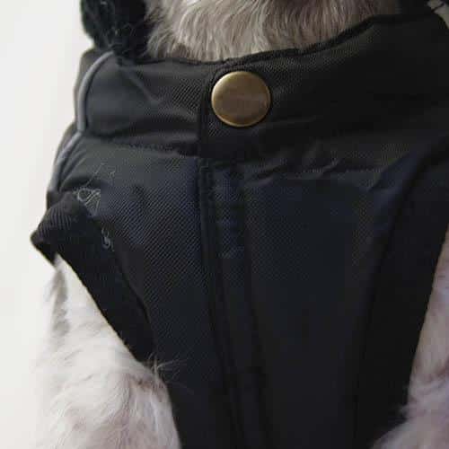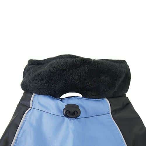 Gomas elásticas interiores laterales traseras para que el abrigo quede fijo y no se desplace lateralmente con los movimientos del perro.
