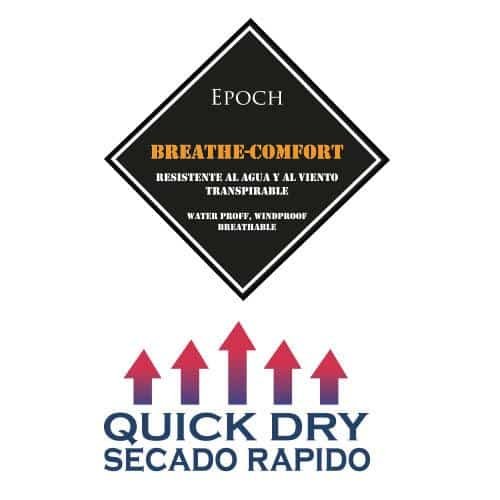 BREATHE-COMFORT es un tejido de alta tecnología que se fabrica bajo procedimientos especiales con el fin de obtener a la vez una alta permeabilidad a la humedad y viento y un tacto agradable y suave, que resulta muy cómodo de usar.
