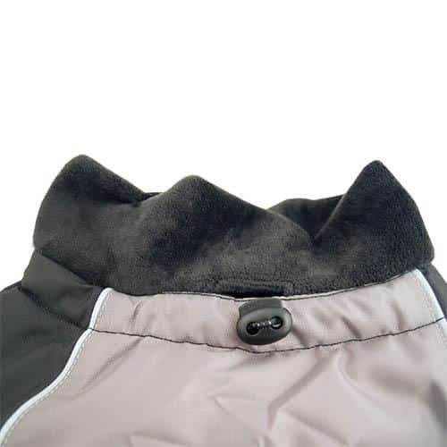 Gomas elásticas interiores laterales traseras para que el abrigo quede fijo y no se desplace lateralmente con los movimientos del perro.