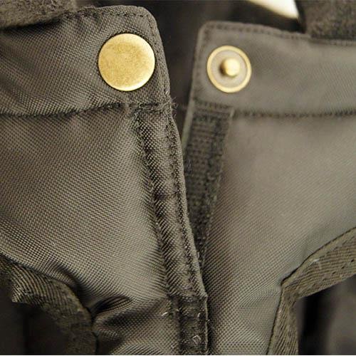 Cierre de velcro en el vientre para facilitar al máximo la puesta y retirada del abrigo.